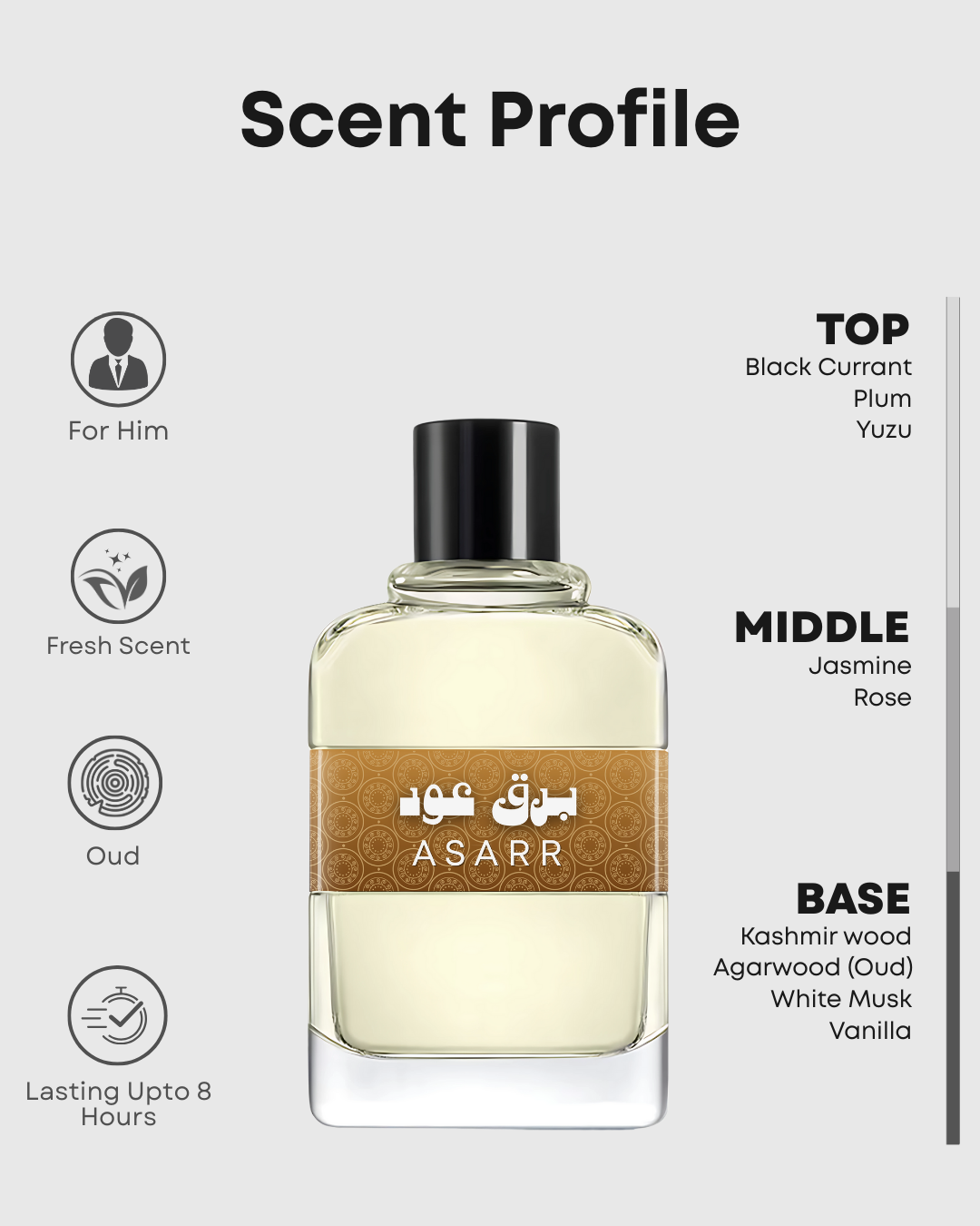 Experience the deep and mysterious aroma of Barq Oud, an oud-rich fragrance inspired by the essence of Kashmir Oud. This scent is perfect for those who appreciate tradition with a touch of modern luxury.