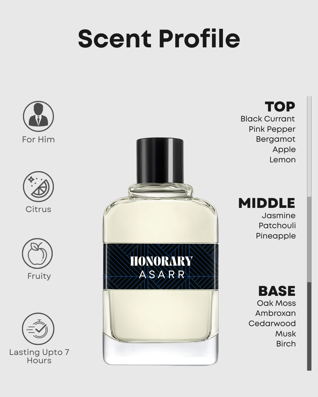 Unleash your inner leader with Honorary, a scent inspired by the legendary Creed Aventus. With fresh fruity notes and deep woody elements, this fragrance embodies strength, power, and success.